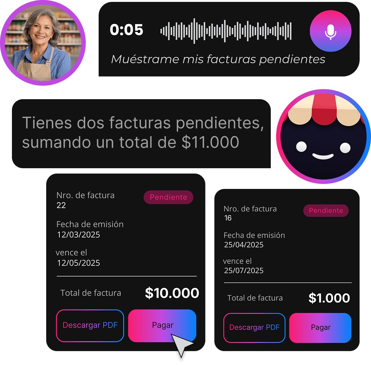 en recuperación de pagos pendientes gracias a recordatorios conversacionales con factura en PDF.